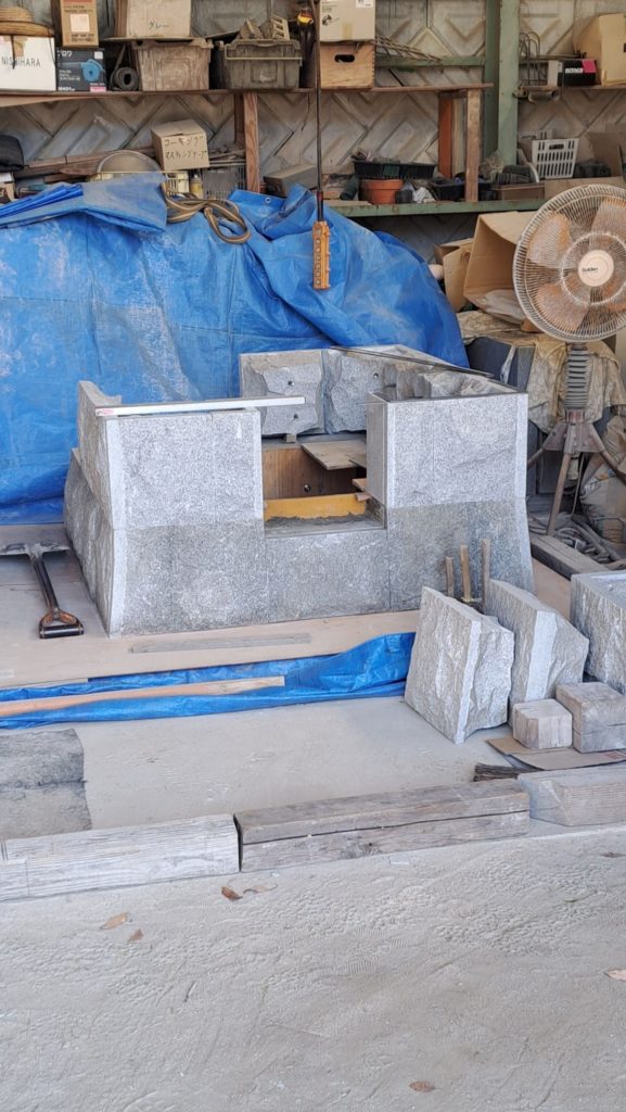ある石屋さんの仕事場です。最近は墓石の需要は少ないです。代わって共同墓の需要があるそうです。今、共同墓を作っているところです。