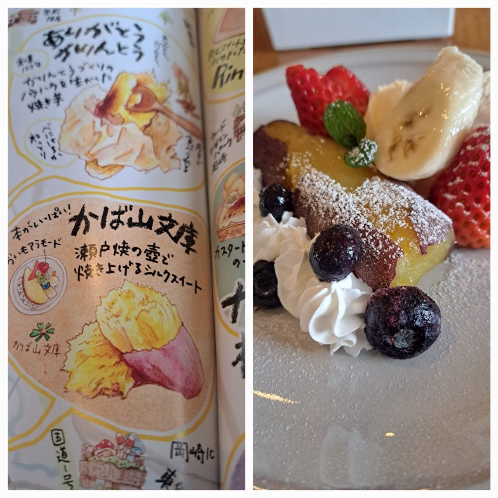 焼きいも、私も焼くので興味があって食べに来ました。おかざき焼き芋街道のかば山文庫です。