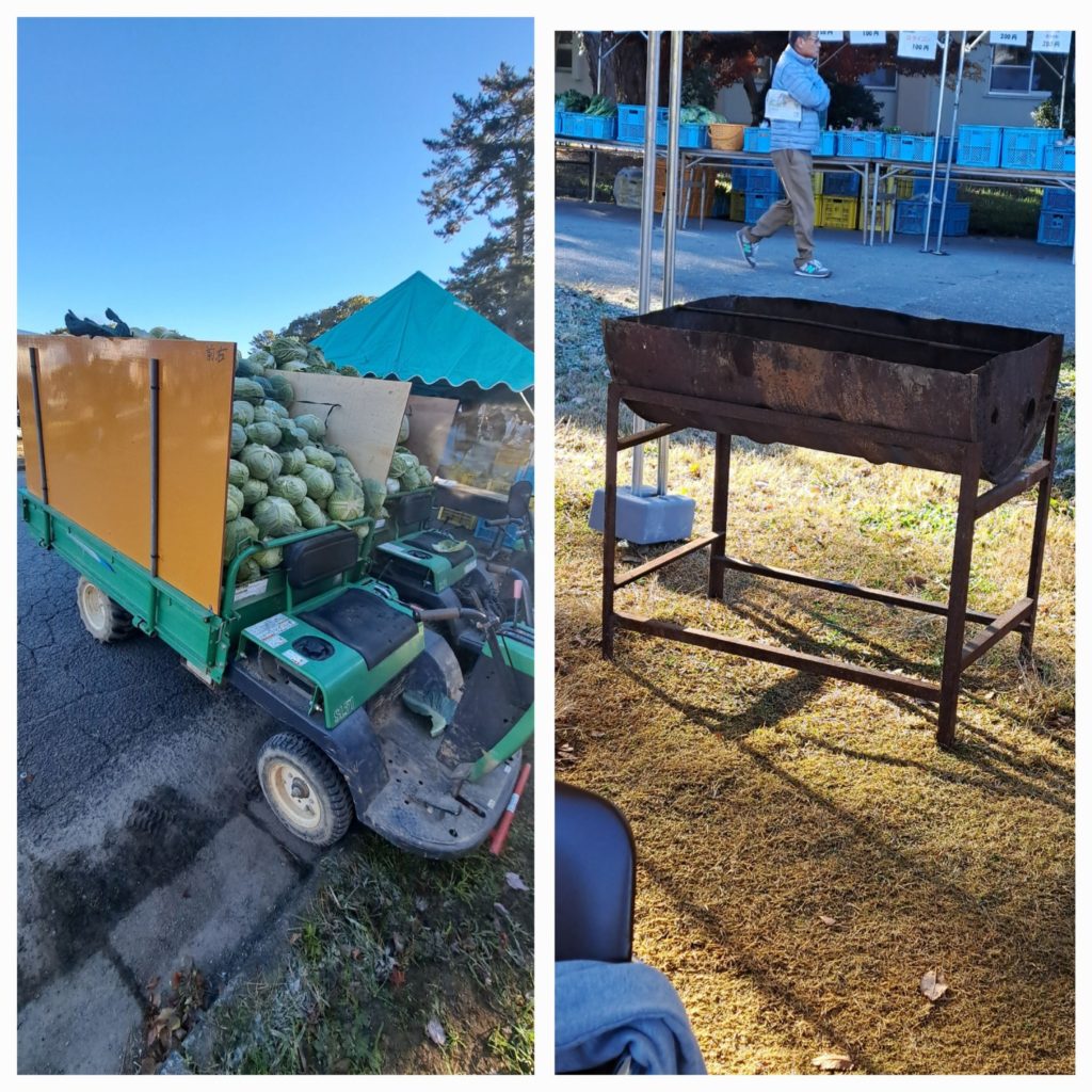 ドラム缶の焼き機に足をつける