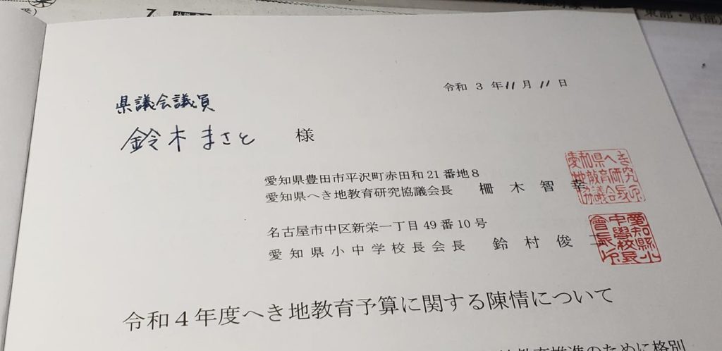 要望内容を一部紹介します。学齢に応じた子供の学力を保証するために、小学校の複式学級編成基準の引き下げ及び中学校の複式学級解消について、