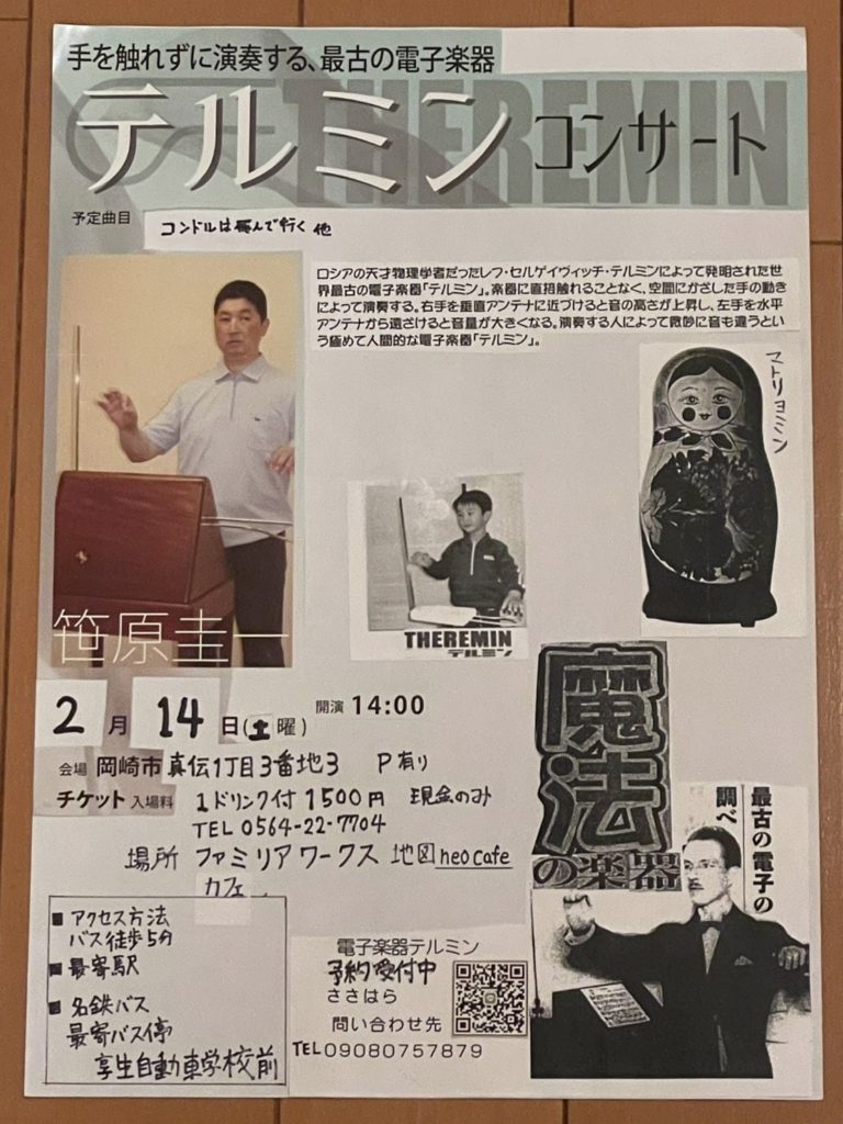 テルミンという楽器は、1920年にロシアの物理学者レフ・テルミンが発明した世界初の電子楽器で、本体に触れることなく、2本のアンテナに手をかざして音の高低や音量を操って演奏するのが特徴です。垂直アンテナで音の高さを、水平アンテナで音量をコントロールし、そのゆらぎのある独特の音色は、まるで人の歌声や悲鳴のようにも聞こえ、映画音楽やロックで効果音としても使われ、演奏する姿は魔術師のようだと評されます。