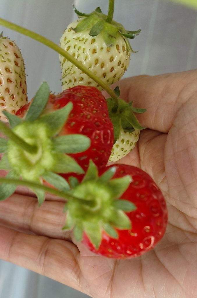 写真はイチゴ狩り園です。いろんな品者のイチゴがありましたが、最近はスターライトという品種がいいそうです。園主さんに聞きました。