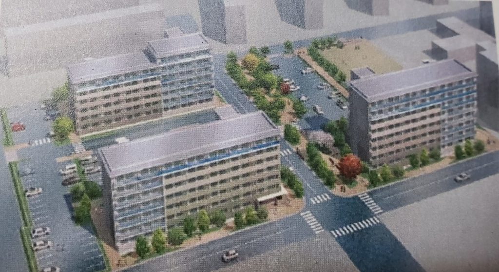 岡崎市上和田町にある県営住宅の建て替えイメージ図です。工事は2021年12月から2026年6月にやります。3棟で約22億円の費用が掛かります。