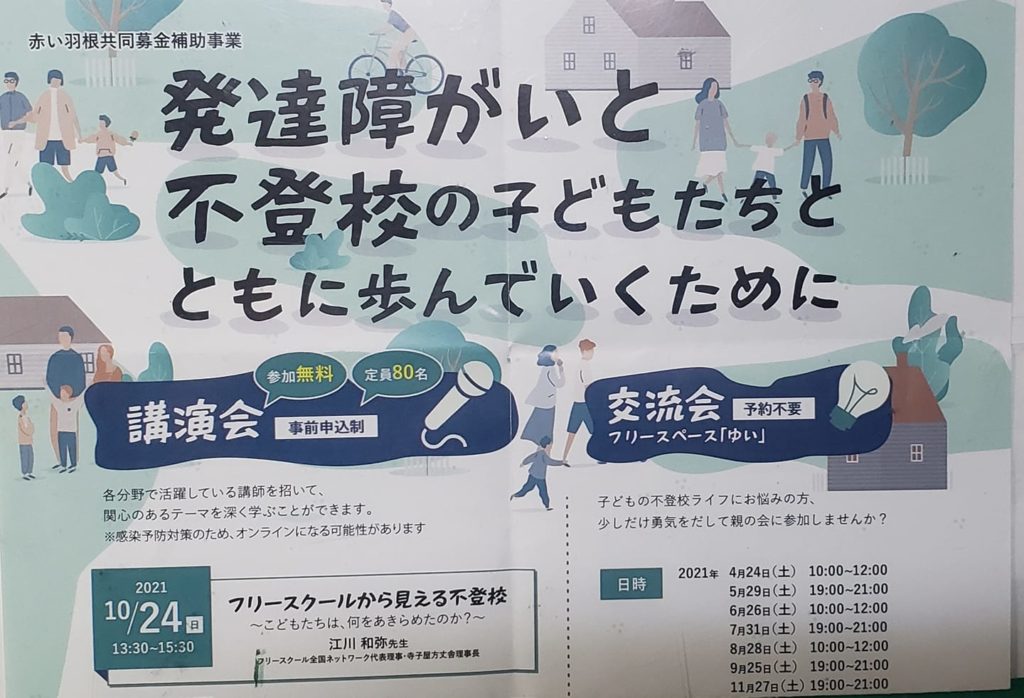 今日、不登校児の会に参加してきました。子供が不登校になった辛い思いを、参加者同士で話せる環境がいいです。本当のことがなかなか話せない世情ですが、ここでは話せると思います。いい会です。困ったときにはぜひ参加してみるといいです。