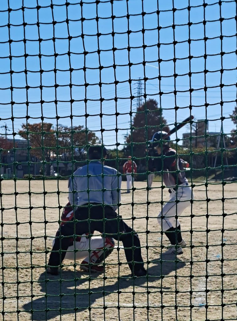 ソフトボールの試合風景です。どのようにチーム編成するのですかときくと、企業内のチームより、企業関係なしの同好会でチーム編成することが多いそうです。