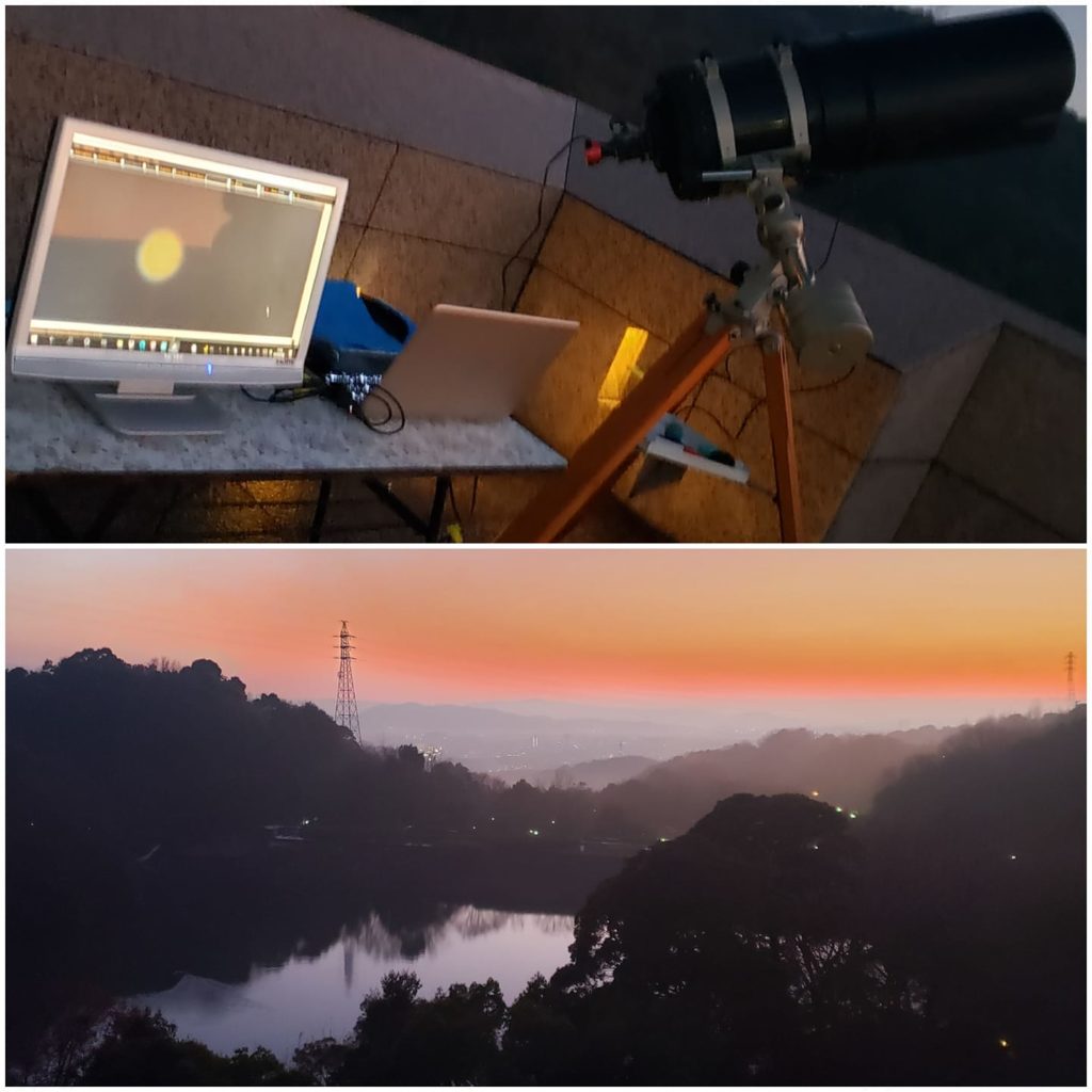 岡崎市美術博物館から見た夕暮れです。すごいいい感じです。この日には星を見る会がありました。土星の輪が望遠鏡で見えるんです。感動的でした。