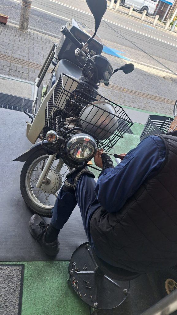 写真はバイクのメンテナンスの様子です。私の相棒です。