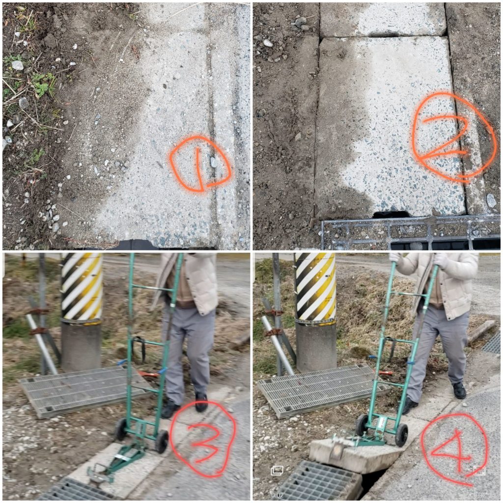 U字溝をはずしてみる 溝の目に砂が詰まって水が流れにくくなっています。岡崎市などに頼むところですが、自分でも機材を借りてきてやることができます。 ① 溝の目が詰まっています ②側溝を外した後の写真です。目のつまりがなくなりました。 これで雨水の流れがよくなります。 ③④岡崎市から外す器具を借りてこのように外します。